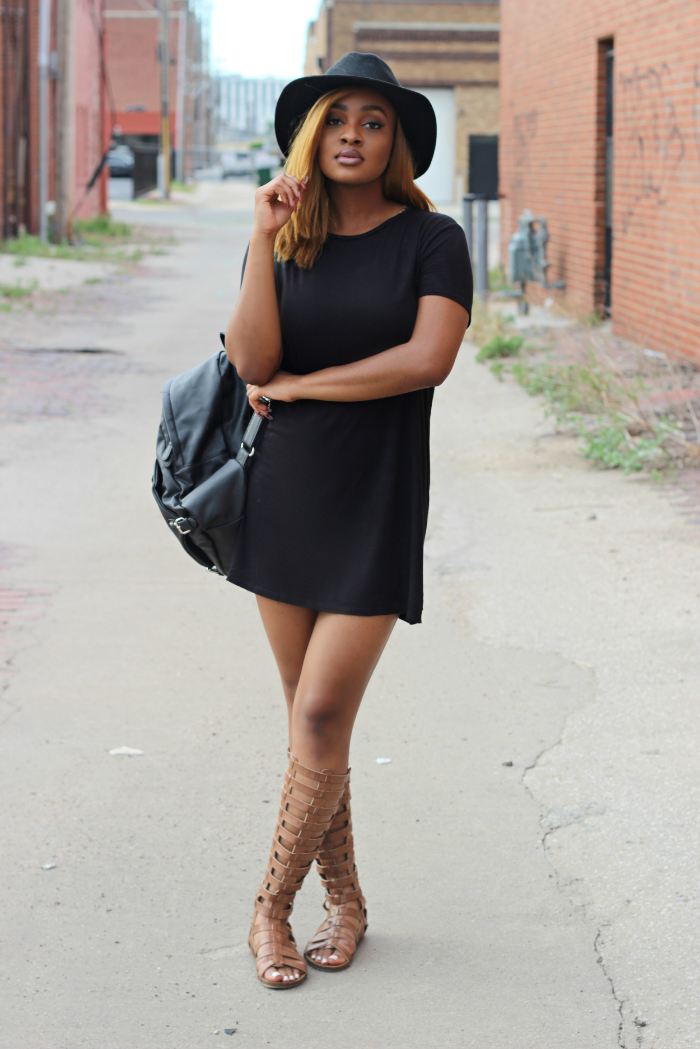 I know for majority of us, when we think of the color black and the summer season, the two would not be likely combined together.  However, if you are like me and no matter how much you love the bold summer colors, floral prints, etc...when your closet is 99.9% black pieces, you can not help fight the urge to throw on your most favorite shade. With that being said, there are ways to make an all black outfit work for you in summer. The easiest way to accomplish this is by opting for lighter fabrics.  In the fall and winter seasons, it is all about layering to stay warm and wearing pieces such as wool scarves and thicker sweaters.  Instead, opt for lighter fabrics, such as chiffon and linen.  Search for those perfect pieces such as t-shirt dresses (like the one I have on), rompers, co-ord sets, jumpsuits, and even maxi/midi dresses. Now, don't be afraid to throw on your favorite pair of black pants, just add a light shirt or a tank top to let some skin show. You can make any look "appropriate" for the season, just add a little less than you would in the colder seasons and you are set!