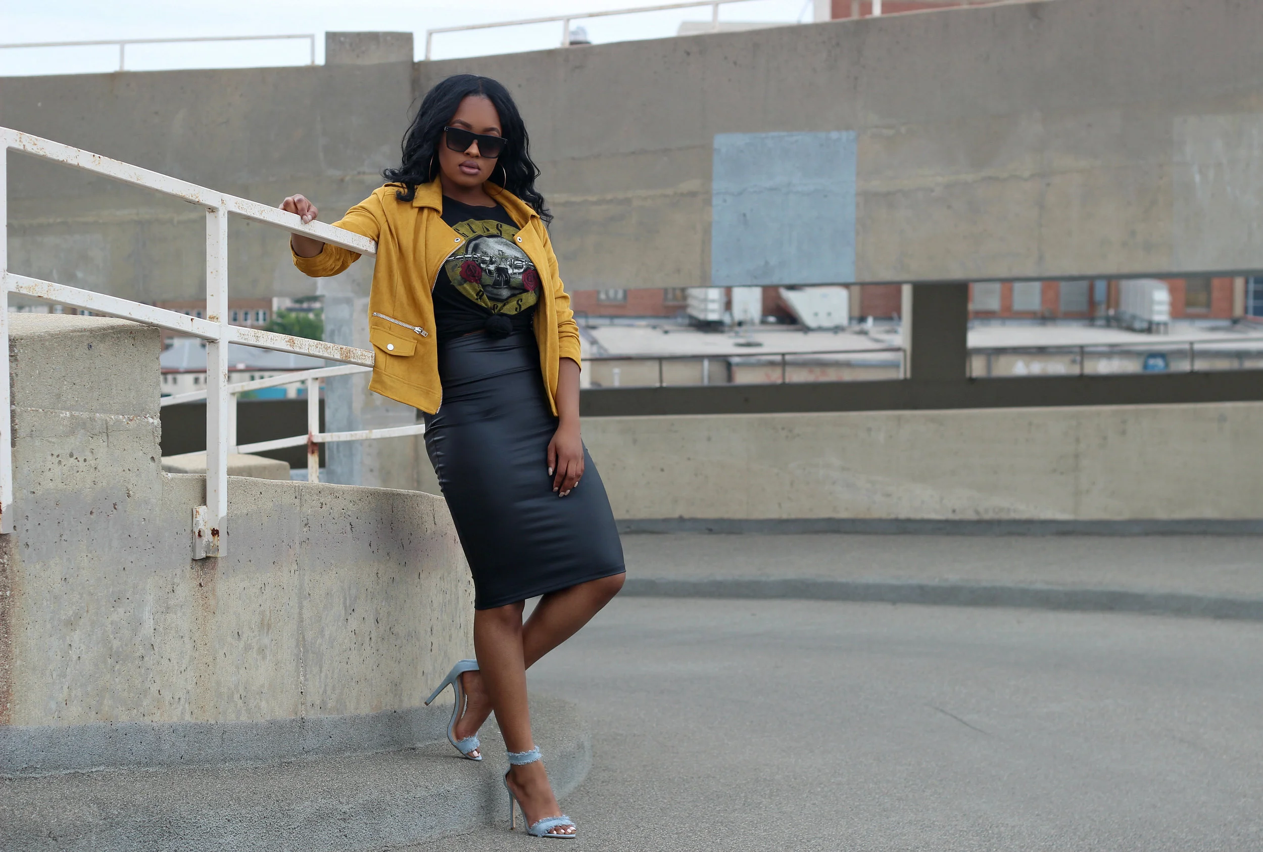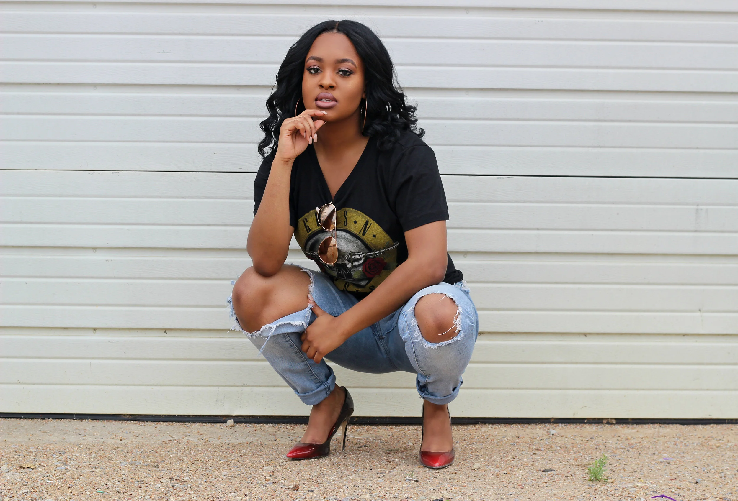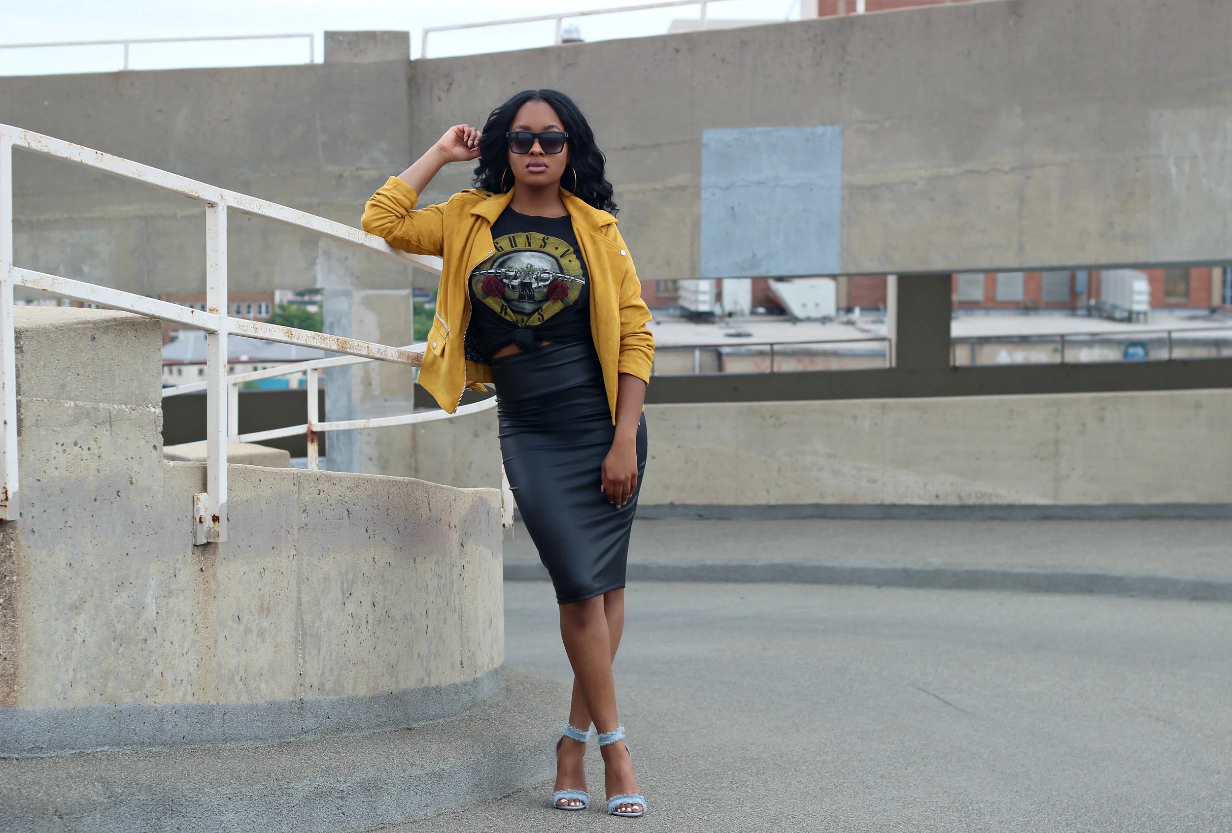 If you have been following me since the beginning, you know that I love giving you all a "two for one". Taking one garment of clothing and giving you different looks that either fit your personality, you can turn from day to night, or just give you ideas you may have never thought of before! So today, I bring to you a "How to Style: The Band Tee". A simple scoop neck shirt, that you can find in any store (online and in your local mall) that showcases either a band, artist, group, brand, and so on and so forth. One thing you will learn about me is that, I go for outfits that look like I took a lot of time and effort to put together...yet are the most simplest ones that I just pulled from my closet. This is one of the main reasons why I find myself not only stocking up on graphic tees, but just basic shirts in general. It is so easy to switch up your entire look, by going from jeans, to a skirt, and sneakers to heels, and by also changing your accessories. The two looks I put together here, I would not necessarily call it a day to night look, because honestly, I would wear either during anytime of the day. Do not be afraid to mix those patterns, mix that black tee with light wash jeans because, it looks better than you would think. Dare to dress up your basic "band tees" for a night out with the girls. It is all about taking simple pieces in order to maximize your closet and the band tee, will do just that!