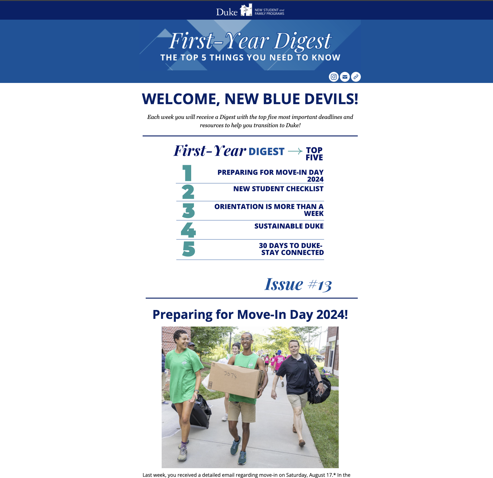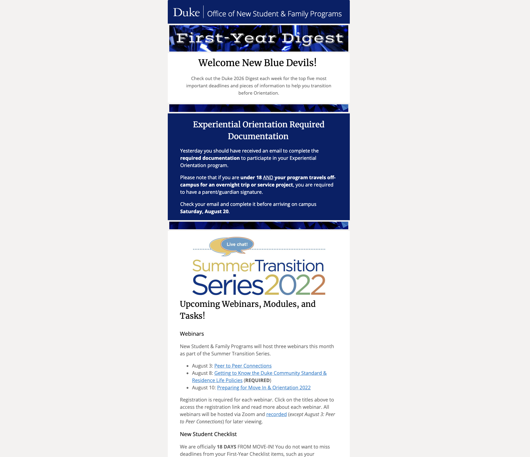 The “Why” of the Office: The messaging communicated the purpose of the office, which is to help students and families successfully navigate the transition to Duke by offering critical resources, support, and opportunities for engagement.