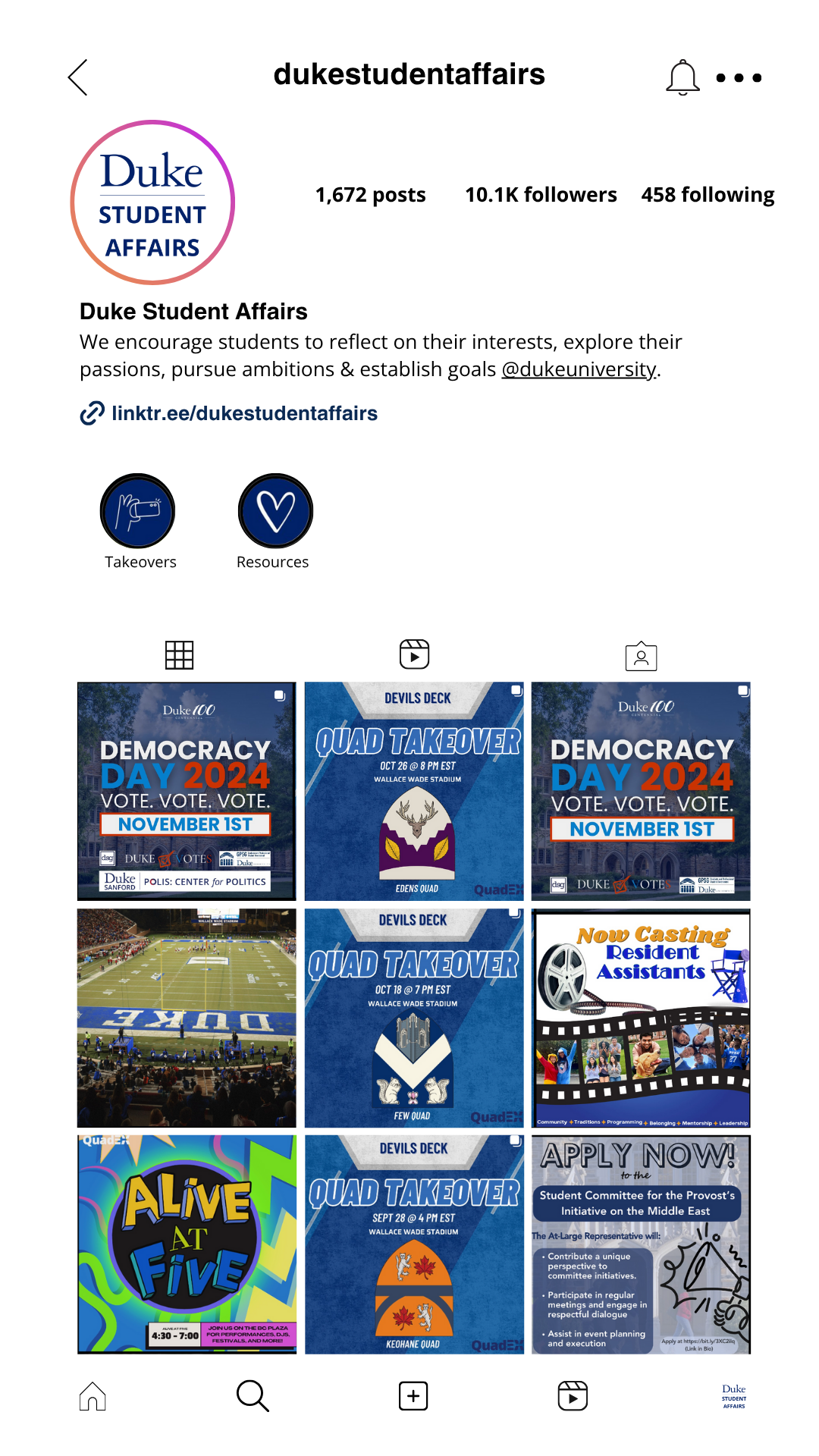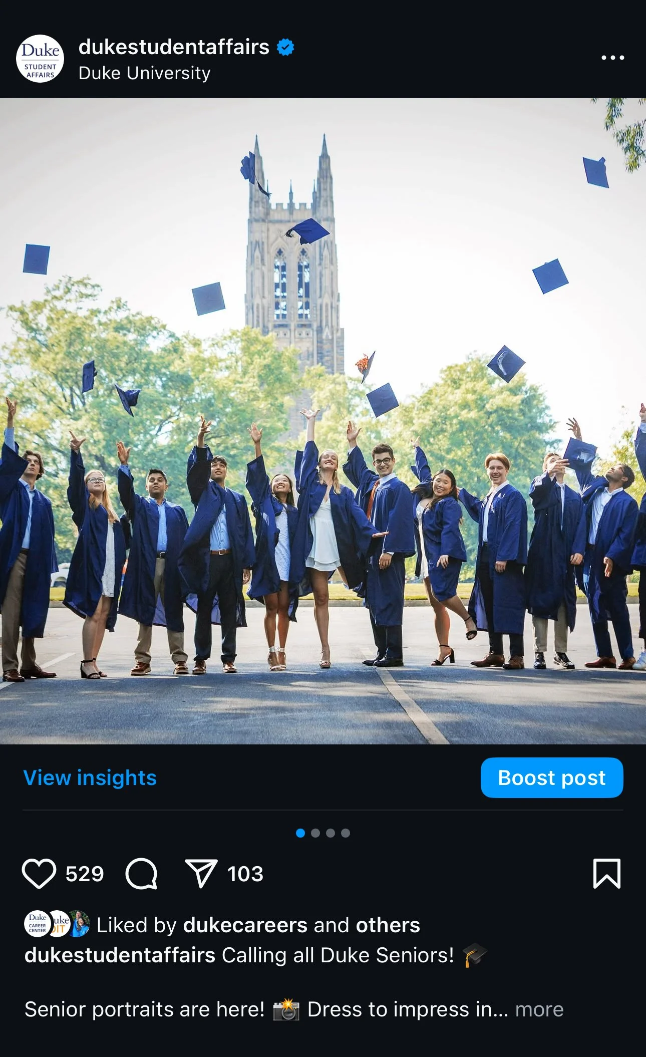 Previously, the Instagram strategy lacked a strong student presence. It did not fully reflect who the students are, what they care about, or the vibrant life at Duke. The content was more institutional, focusing on announcements and information, which made it less engaging for our audience. To address this, I made a deliberate shift to a student-centered approach, with storytelling at its core. By showcasing authentic student experiences, this allows for both current and prospective students to see themselves in the content.